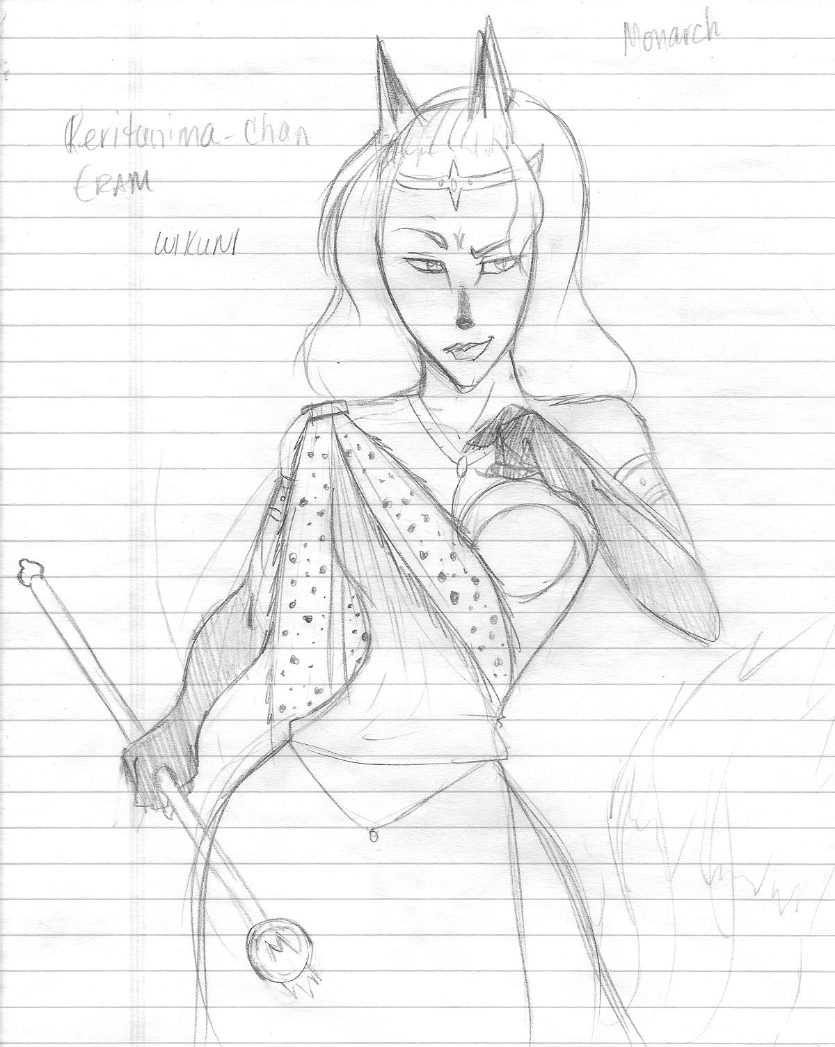 Please forgive the simplicity of this particular sketch, I alway had trouble imagining exactly what Kerri's face looked like. It's hard to put fox and human together and make it look...what's the word I'm looking for...subtle? Articulate? No....subtle's the word I'm looking for...sorry about this everybody...when I figure it out, I'll post a more decided and cleaner sketch of our favorite Wikuni queen.