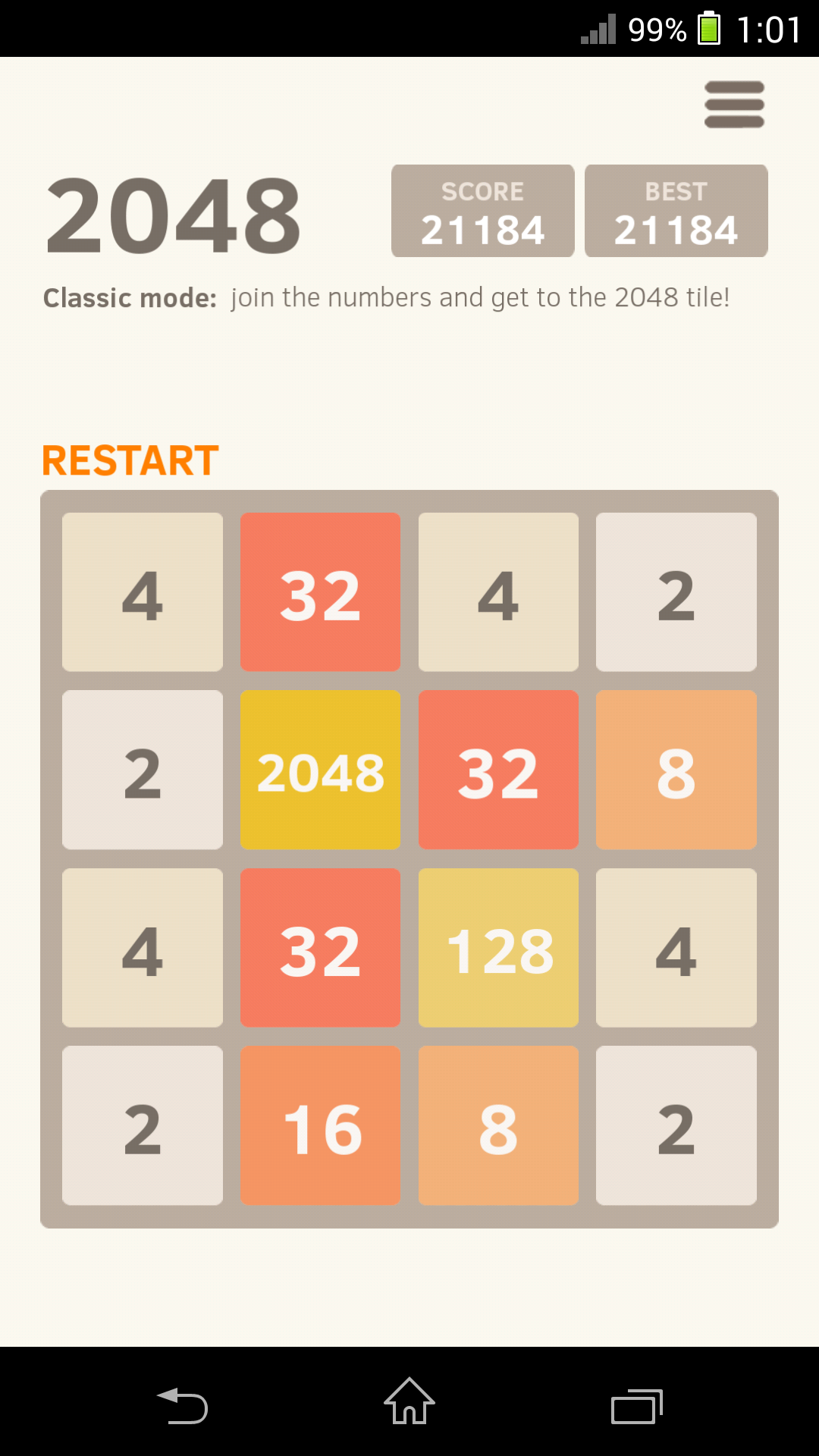 Finally managed to "win" (get a block to 2048) with a score of 20,536, gonna keep going and see how far I can push it.