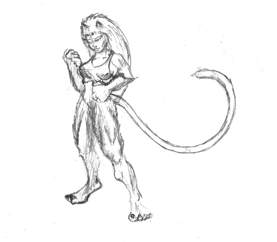 Were-cats are pretty stocky, but they don't LOOK it quite as much as Rahnee's sketch. All Were-cats are quite tall and look very athletic.